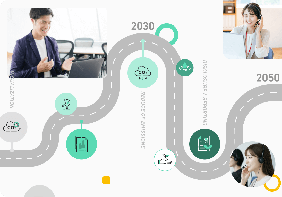 - 目標設定から具体的な削減計画の作成まで、ロードマップの策定をお任せください